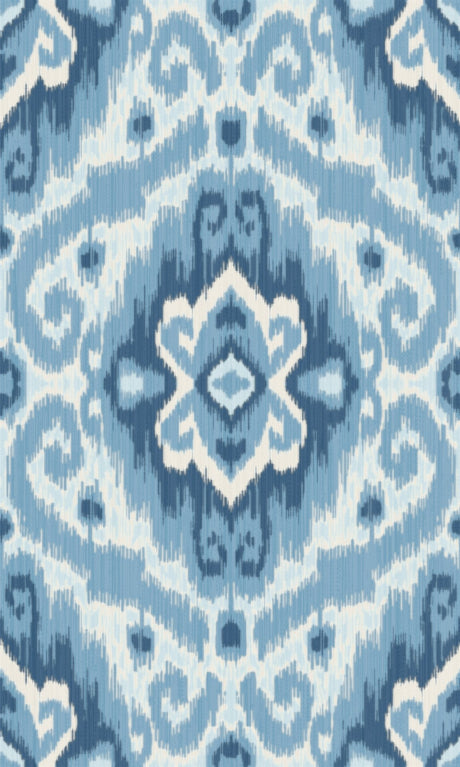 Solola Blue Ikat Wallpaper with Bohemian Global Pattern - Brewster 4146-27238