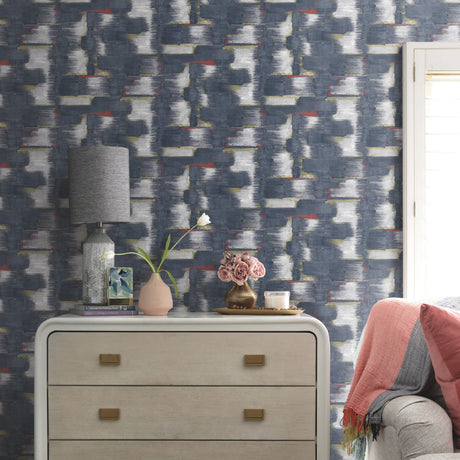 Modern Ikat Navy Peel & Stick Wallpaper with Abstract Ikat Pattern, Modern Style - York RMK12526RL