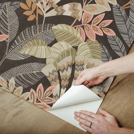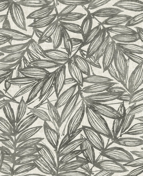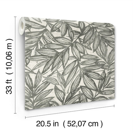 Yara Charcoal Peel & Stick Wallpaper with Botanical Leaves Motif - InHome NHS6174