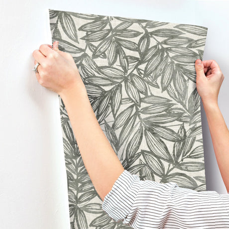 Yara Green Peel & Stick Wallpaper with Botanical Leaf Pattern - Brewster NHS6172