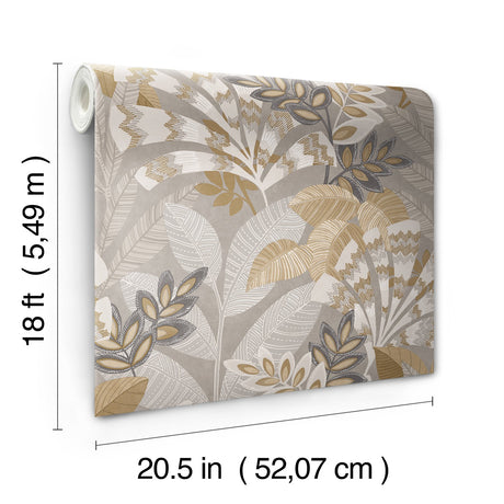 Yara Taupe Peel & Stick Wallpaper with Botanical Leaves Motif - InHome NHS6173