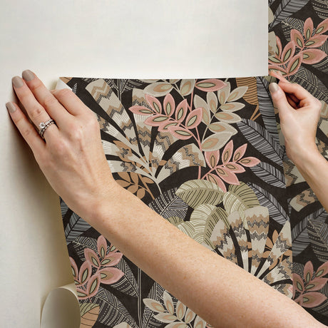 Marajo Black Peel & Stick Wallpaper with Botanical Leaves Motif - NuWallpaper NUS6214