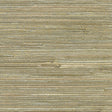A woven texture of natural grass set against a metallic platinum background. The tan fibers are glazed with a subtle metallic wash for a glamorous look. Iriga is an unpasted, grasscloth wallpaper.