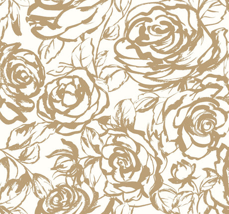 Nelda Gold Rose Wallpaper with Modern Botanical Flower Pattern - A-Street Prints 4135-72708