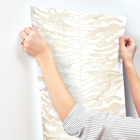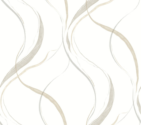 Ink Flow Neutral Wallpaper with Modern Organic Ribbon Pattern - York FM1093