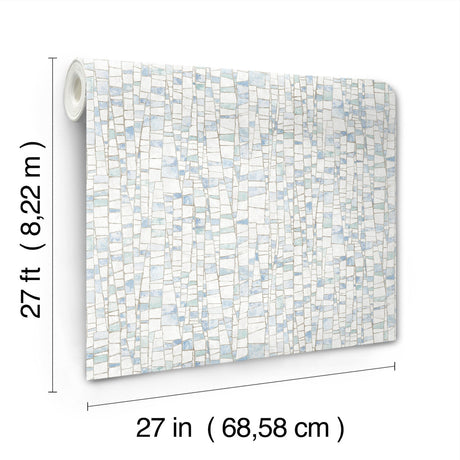 Kaleidoscopic Blue Geometric Modern Wallpaper with Metallic Raised Ink - York FM1081