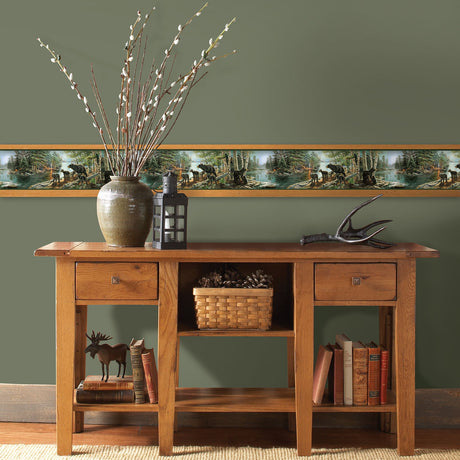Bear Necessities Multicolor Mountain Lake Wallpaper