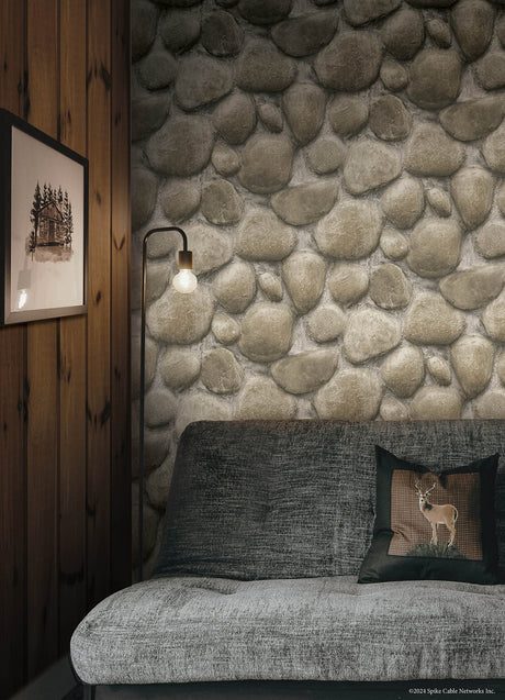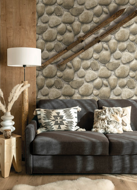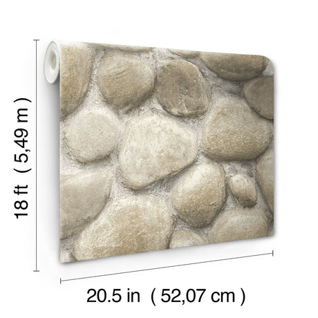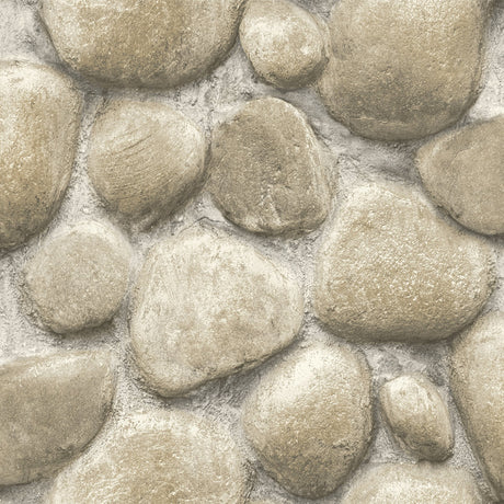 Root Rock Beige Wallpaper with Stone Graphic Motif, Farmhouse Style - 4142-72612
