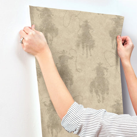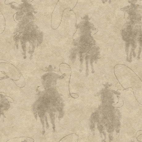 Stockman Silhouette Khaki Wallpaper with Western Cowboy Motif - Chesapeake 4142-72640