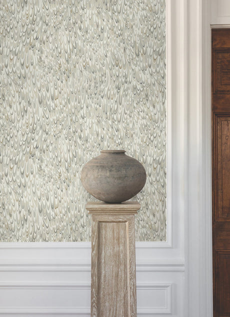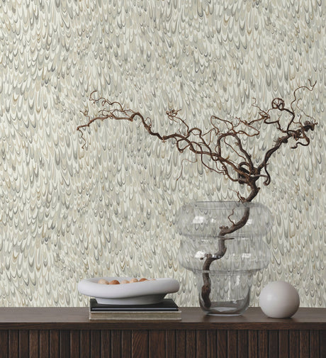 Aslan Neutral Wallpaper with Marbled Feathered Motif - York GT4581