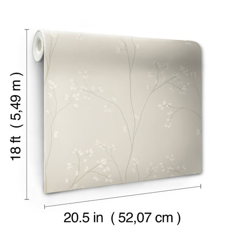 Blossom Stripe Cream Peel & Stick Wallpaper with Floral Branch Pattern - York RMK12807PL
