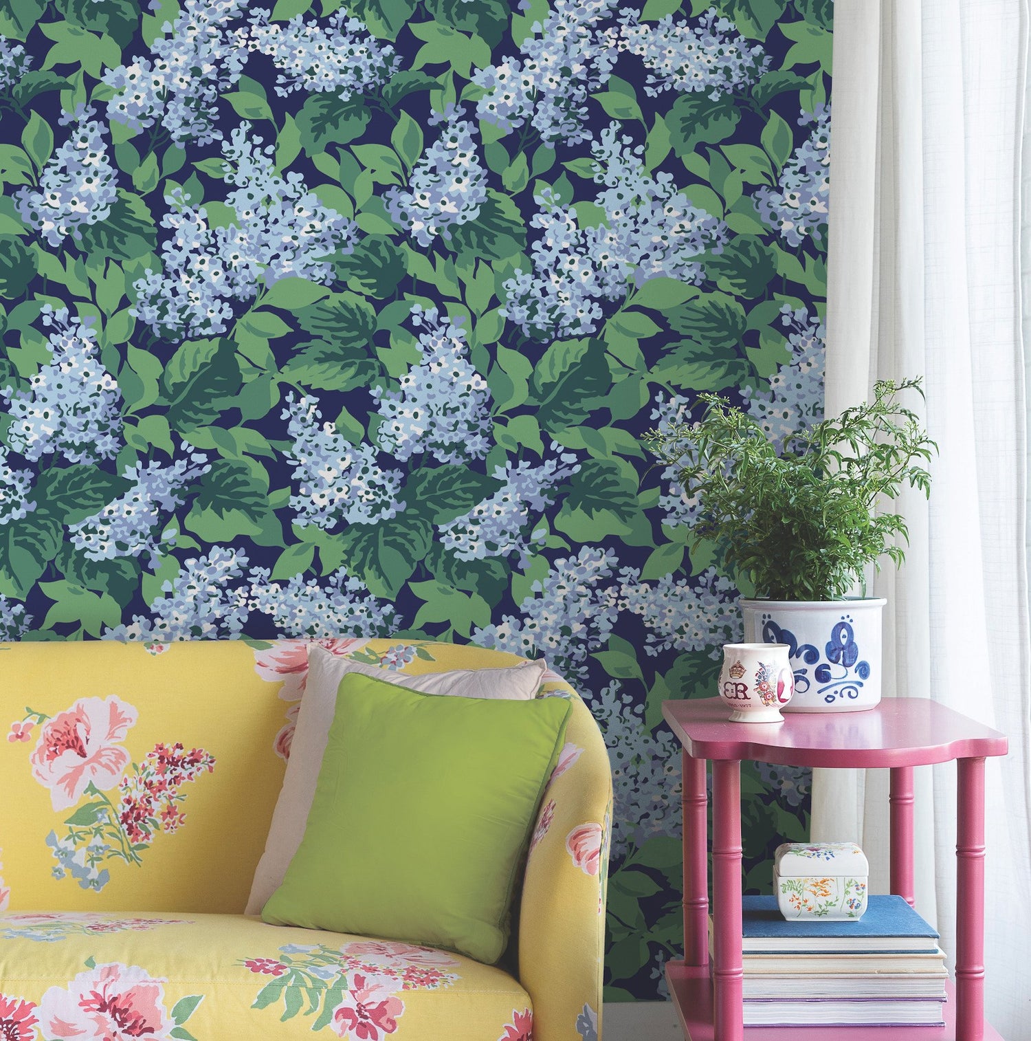 A glorious lilac garden on the atmospheric rocky coast of Maine blooms brilliantly in the floral Bar Harbor pattern. This Bar Harbor Peel & Stick Wallpaper measures approximately 20.5 inches wide by 20 feet long, covering About 34.2 square feet per roll. Fresh! Fun! Fabulous! Exploded florals and whimsical elements such as strawberries and pineapples pair beautifully with timeless graphic elements that include luxuriant trellis and classic Chinoiserie motifs. Big, bold, unexpected. Timeless. And always happy.