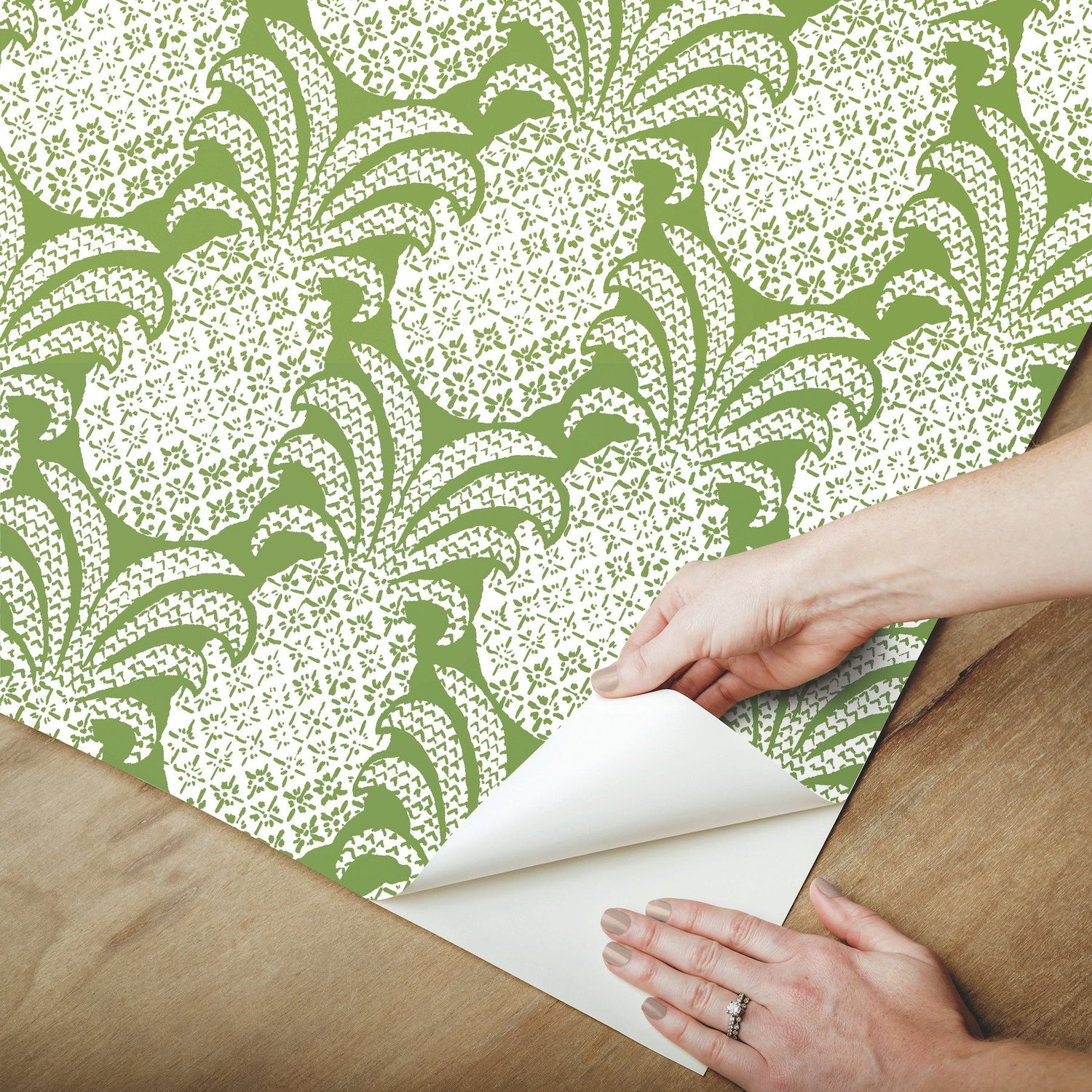 Colony Club Palm Green Peel & Stick Wallpaper with Pineapple Botanical Motif - York PSW1392RL