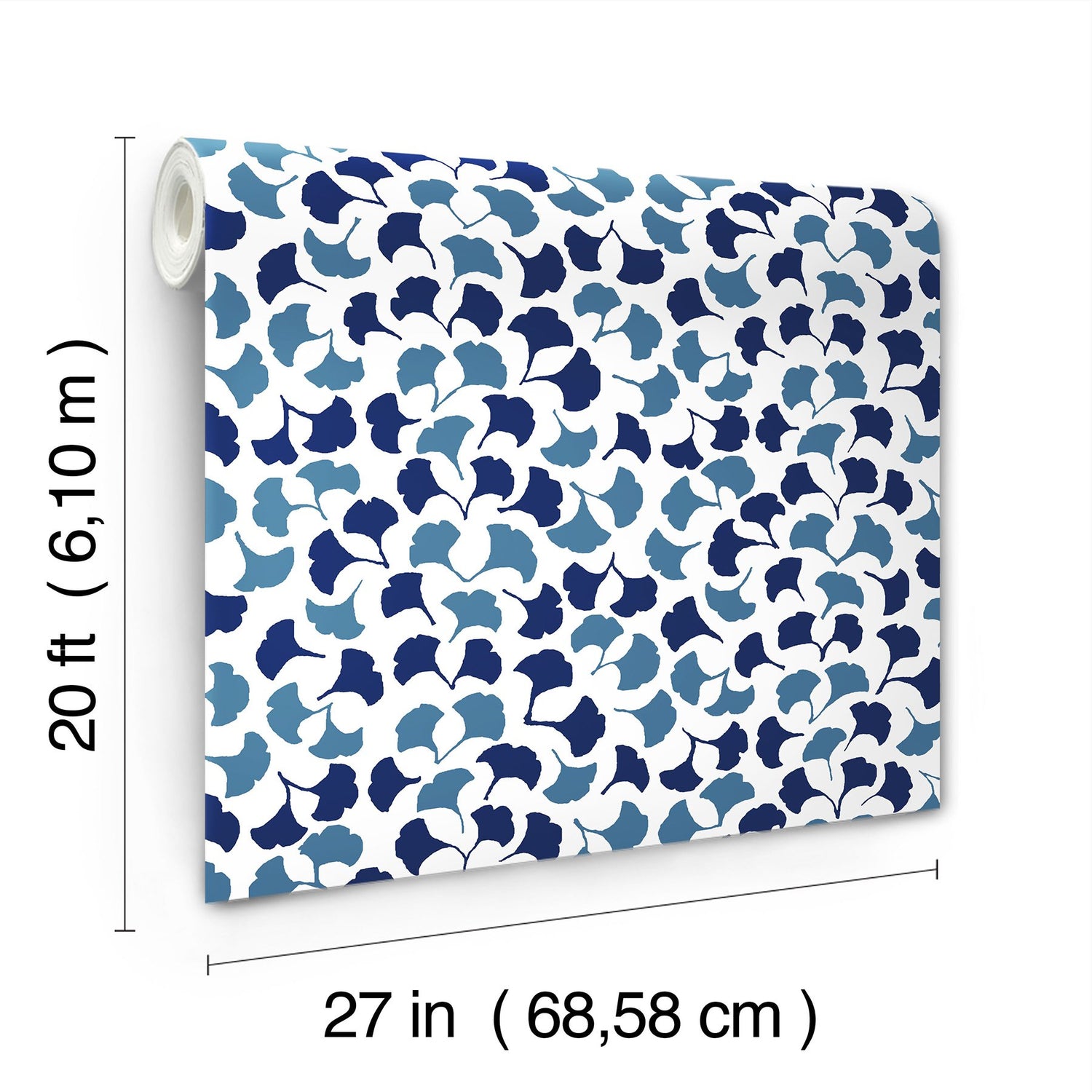 Forest Glade Navy Blue Peel & Stick Wallpaper with Botanical Ginkgo Leaf Motif - York PSW1390RL