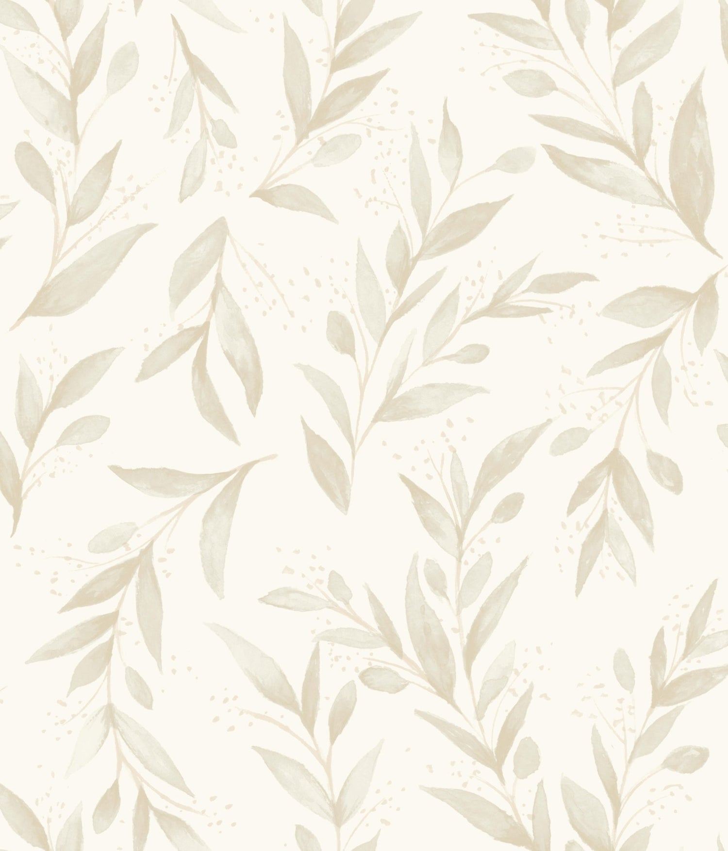 Magnolia Home Olive Branch Beige Peel & Stick Wallpaper with Botanical Farmhouse Style - York PSW1158RL