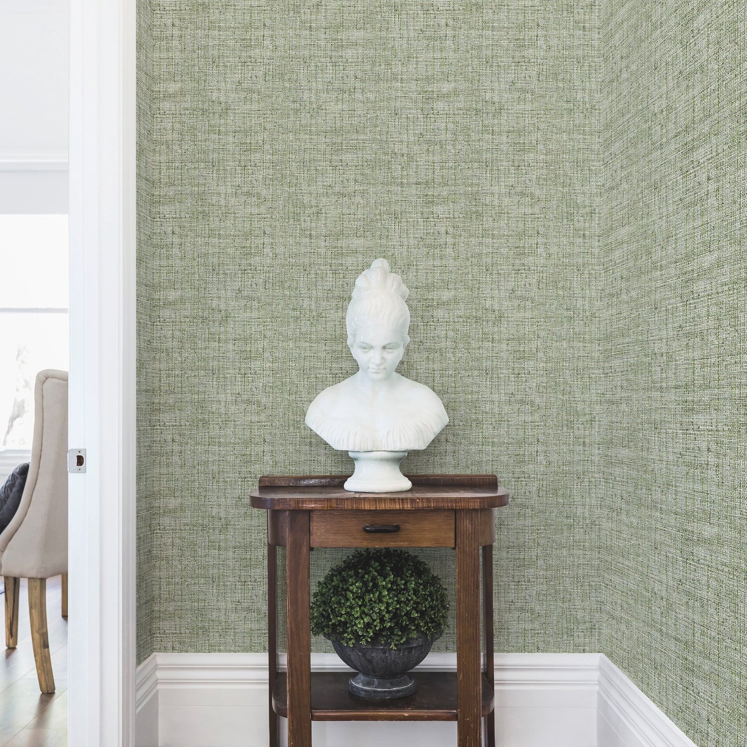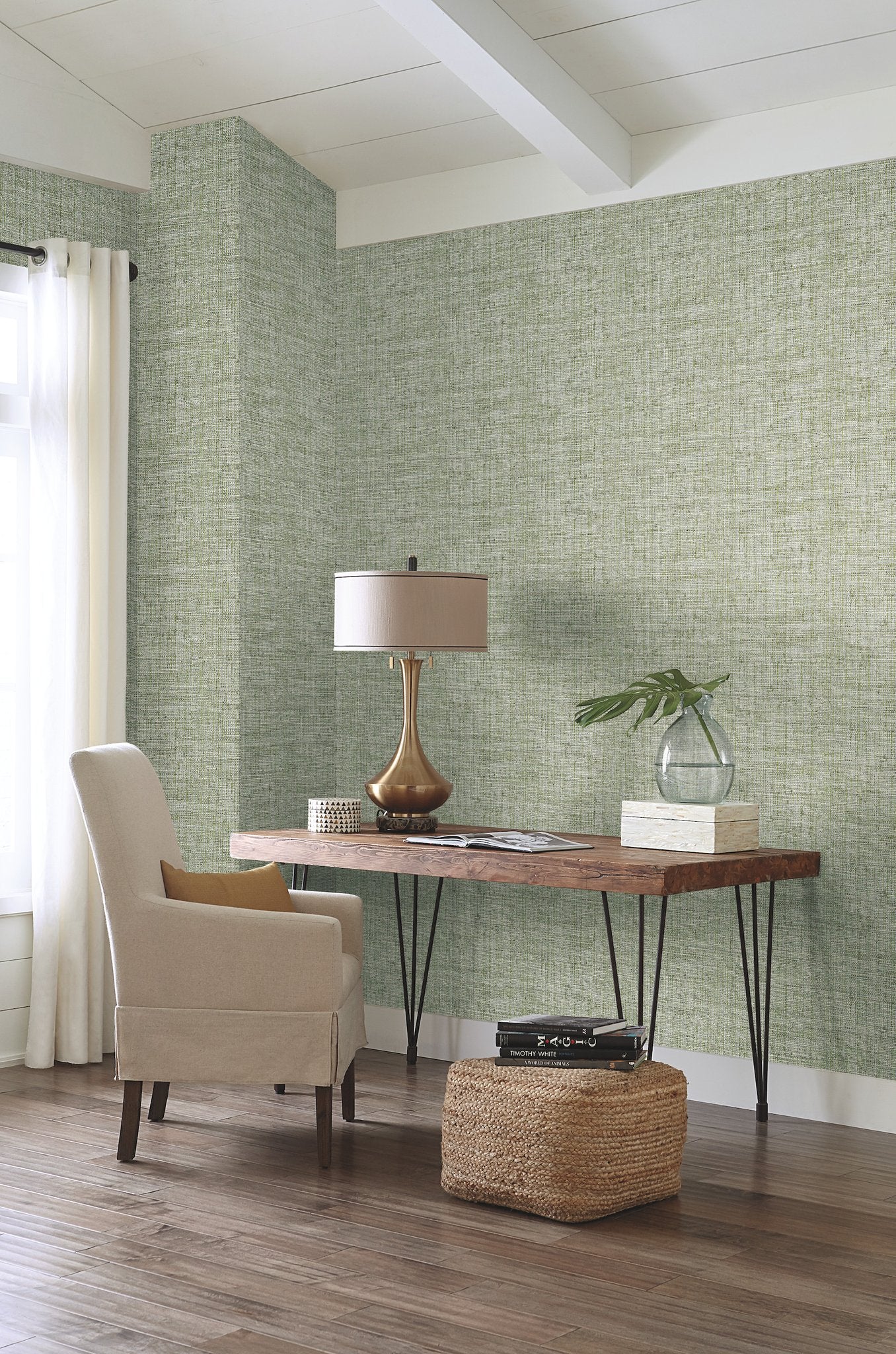 Detailed Name: York Wallcoverings Papyrus Weave Green Peel & Stick Wallpaper, 27-in by 20-ft