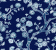 Temple Garden Navy Blue Peel & Stick Wallpaper with Botanical Floral Chinoiserie Motif - York PSW1407RL
