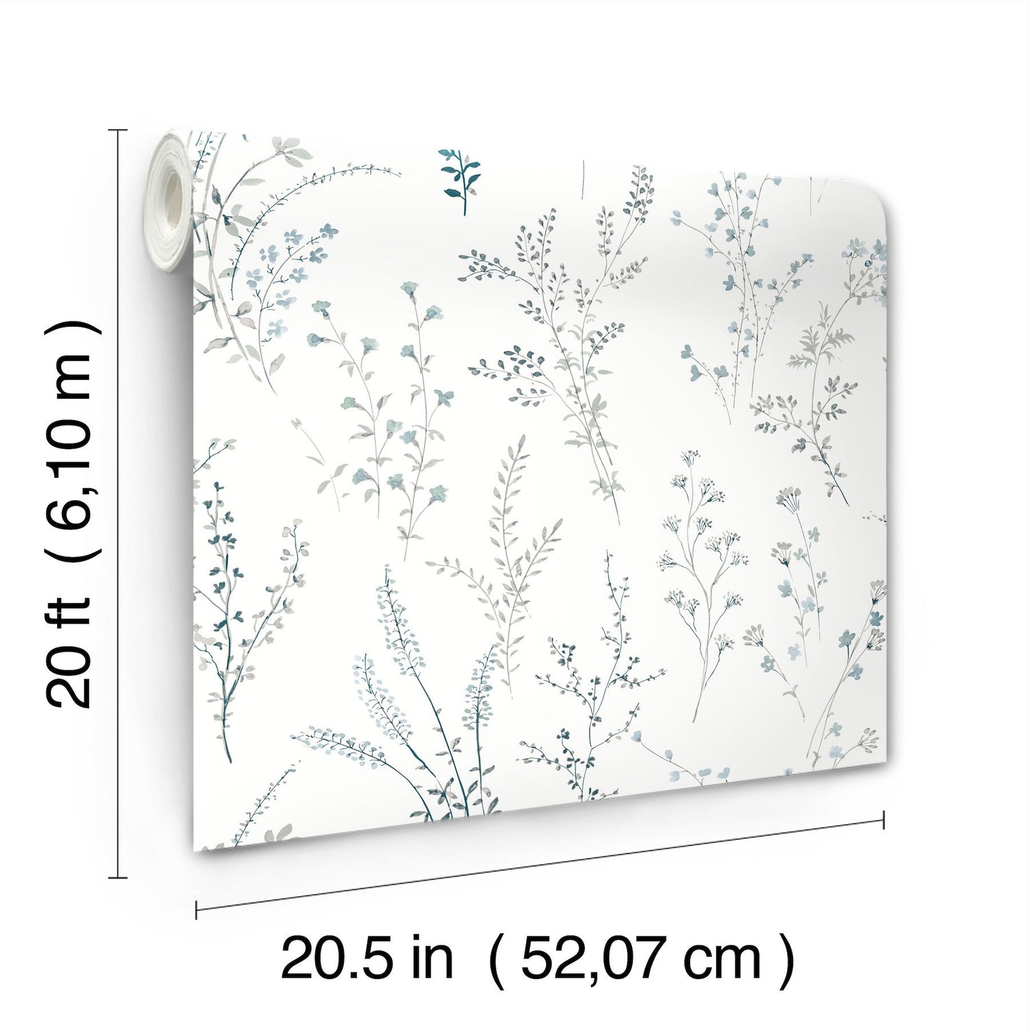 Detailed Name: York Wallcoverings Wildflower Sprigs Blue & Green Peel & Stick Wallpaper, 20.5-in by 20-ft