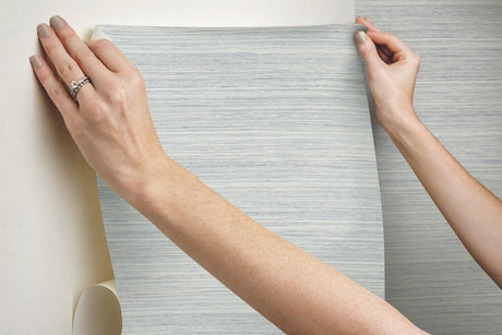 Cattail Weave Blue Peel & Stick Wallpaper with Woven Grasscloth Look - York PSW1281RL