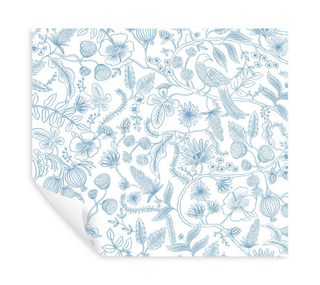 Garden Party Blue Premium Peel & Stick Wallpaper with Floral Botanical Pattern - York PSW1201RL