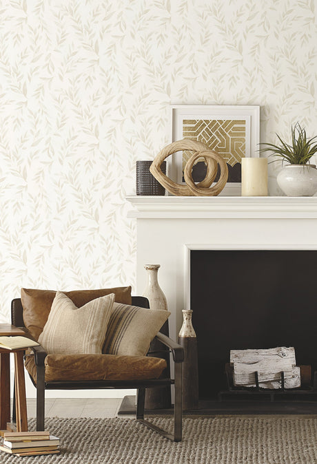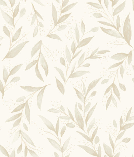 Olive Branch Charcoal Peel & Stick Non Woven Wallpaper with Botanical Olive Motif - York PSW1003RL