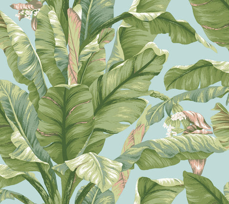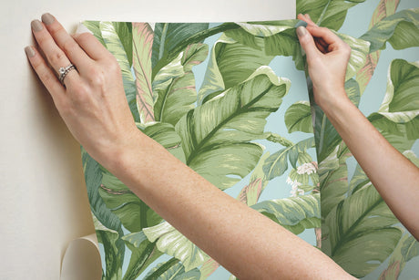 Banana Leaf Blue & Green Premium Peel & Stick Wallpaper - York PSW1036RL