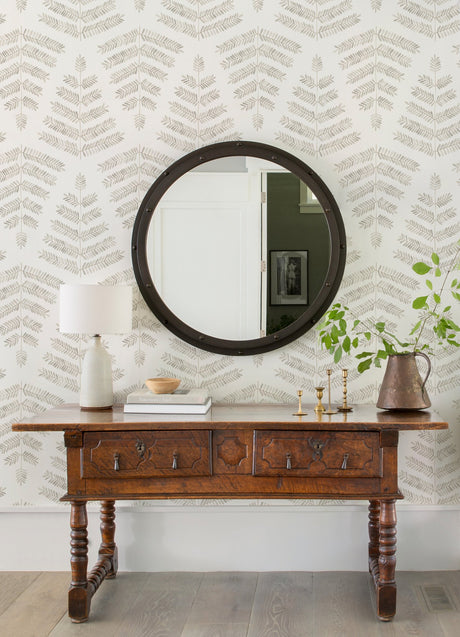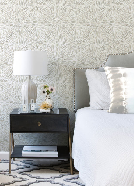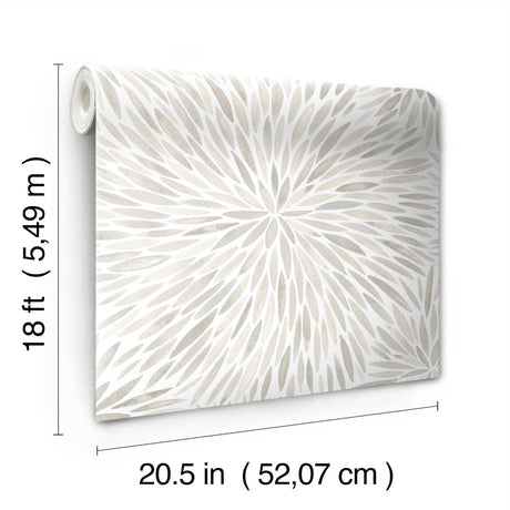 Cat Coquillette Burst Neutral Peel & Stick Wallpaper with Botanical Sunburst Motif - York RMK12645PL