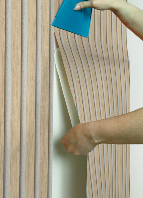 Slat Wood Natural Peel & Stick Wallpaper with Modern Wood Slat Pattern - NuWallpaper NUS4845