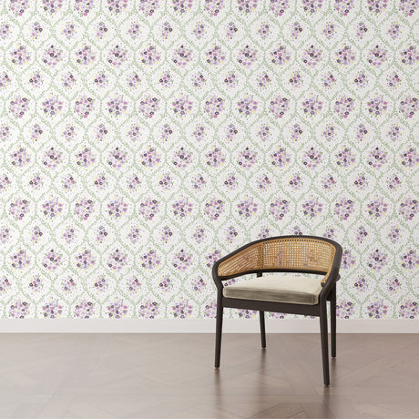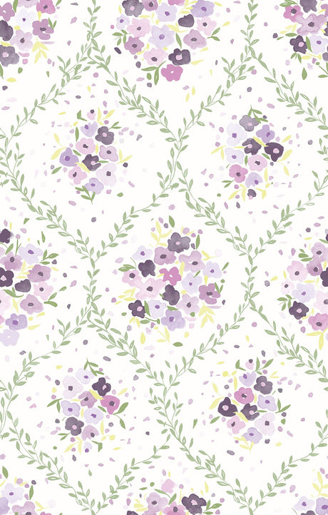 Flourish Purple Wallpaper with Watercolor Floral Motif - York CI2424