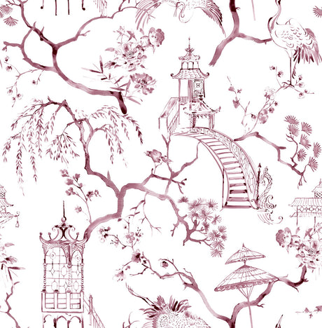 Orchid Conservatory Toile Mulberry Wallpaper with Metallic Tropical Toile Pattern - York RT7881