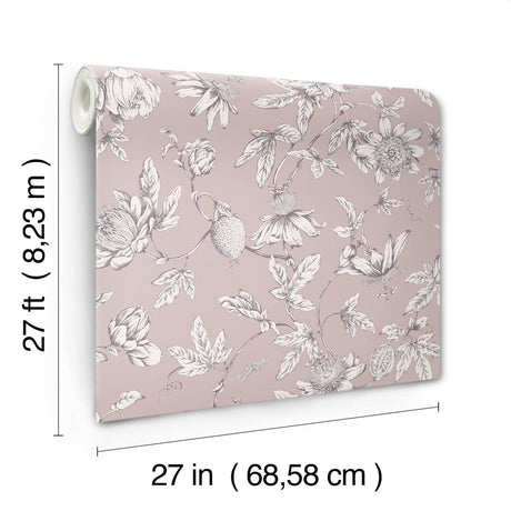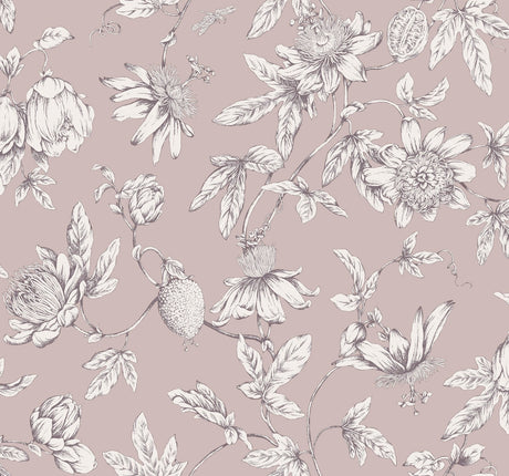 Passion Flower Toile Orchid Wallpaper with Traditional Toile Floral Pattern - York RT7851