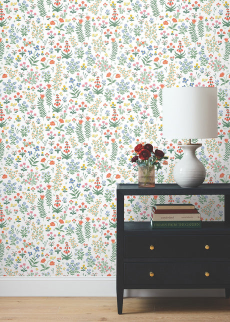 Posy Cranberry Peel & Stick Wallpaper with Botanical Vine Motif - Brewster CJS6322