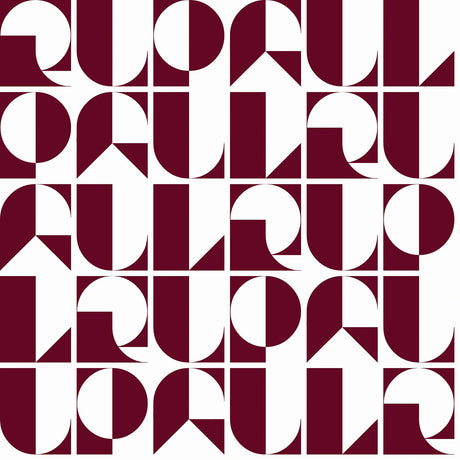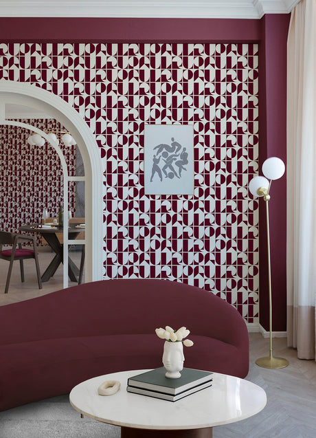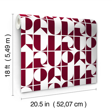 RuDeco Oxblood Red Peel & Stick Wallpaper with Art Deco Geometric Lettering - RPS6304