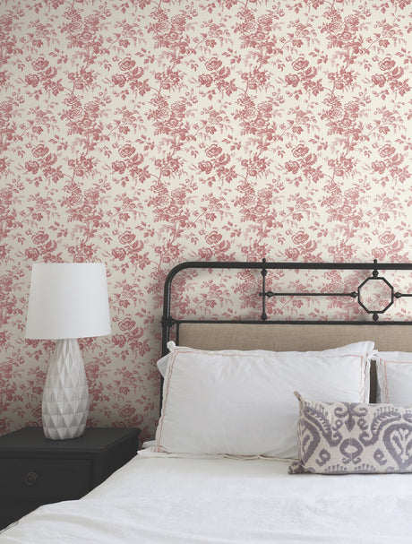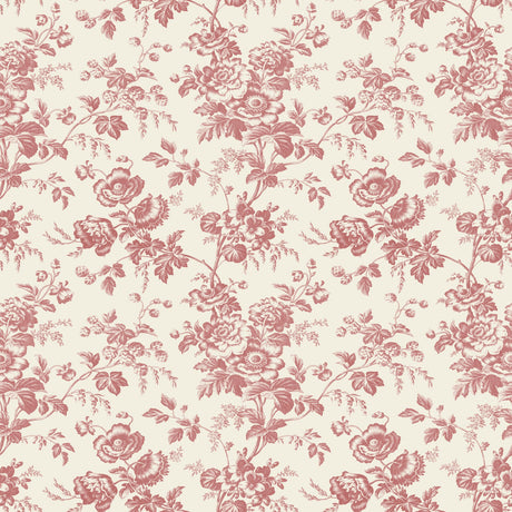 Anemone Toile French Red Wallpaper with Traditional Toile Floral Motif - York RT7871