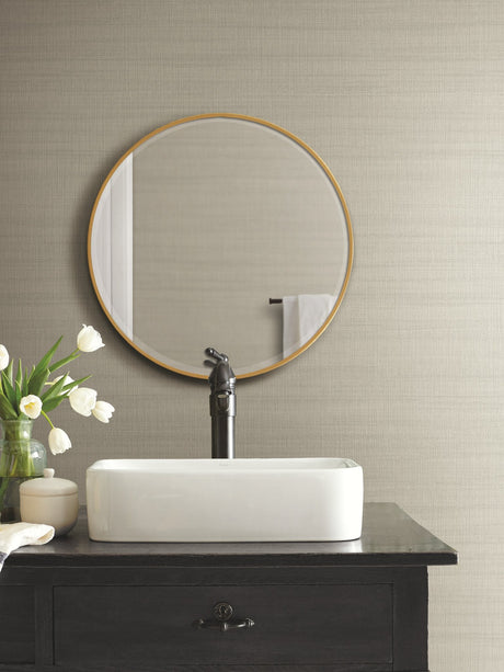 Washed Linen Cotton Beige Prepasted Wallpaper, Sure Strip Solids - York OM3661SAM