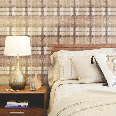 Tweed Plaid Brown Peel & Stick Wallpaper with Traditional Plaid Pattern - York RMK11397RL SAMPLE