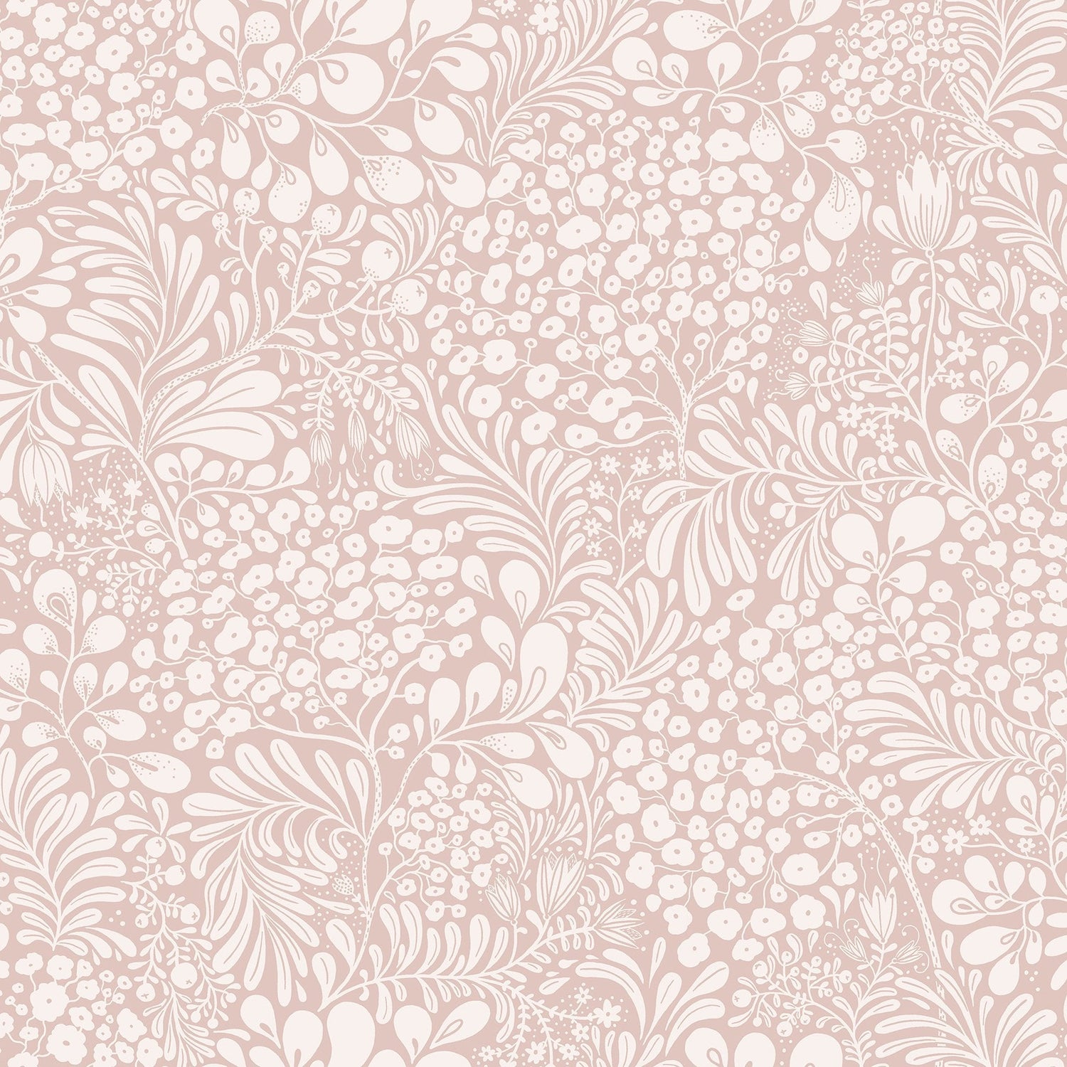 Add warmth and charm to your home with this inviting Scandinavian-inspired wallpaper. The soft pink backdrop is covered with white illustrations of lush, leafy plants and delicate flowers. Siv is an unpasted, non woven wallpaper.
