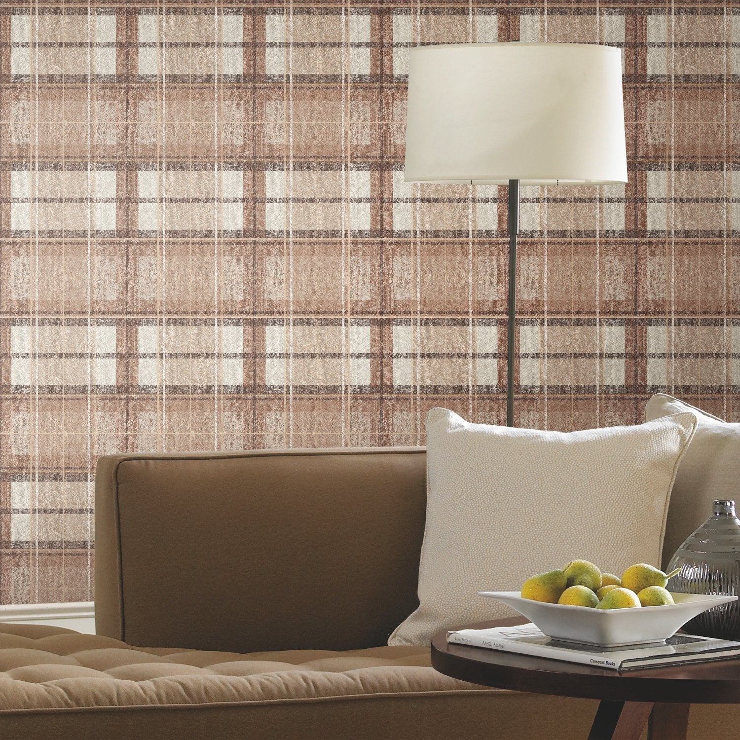 Tweed Plaid Brown Peel & Stick Wallpaper with Traditional Plaid Pattern - York RMK11397RL SAMPLE