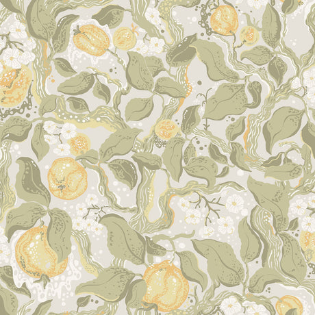 Kort Sage Fruit and Floral Wallpaper with Scandinavian Botanical Pattern - Brewster 4143-22025