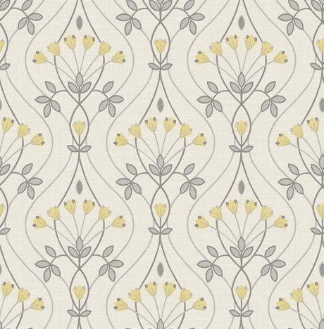 Wilder Grey Peel & Stick Wallpaper with Yellow Scandinavian Tulip Ogee Pattern - NuWallpaper NUS4986