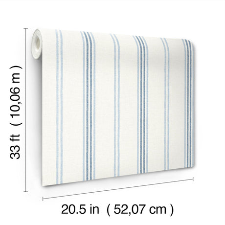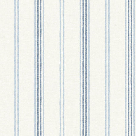 Lovage Blue Linen Stripe Wallpaper with Farmhouse Stripes Pattern - Chesapeake 4134-72546