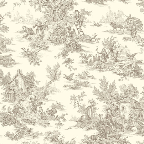 Champagne Brown & White Toile Prepasted Wallpaper - York AF2015