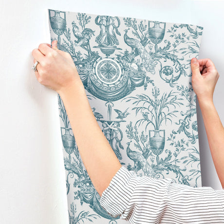 Avian Fountain Toile Jade Wallpaper with Traditional Toile Pattern - York RT7811