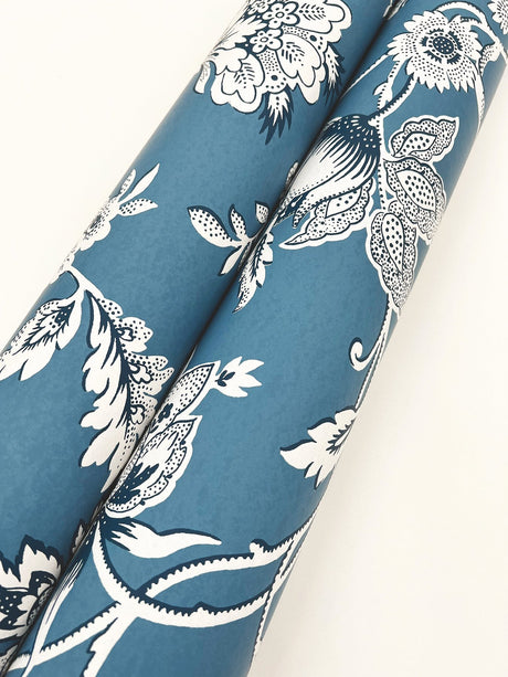 Sutton Blue Wallpaper with Coastal Toile Jacobean Floral - York RT7821