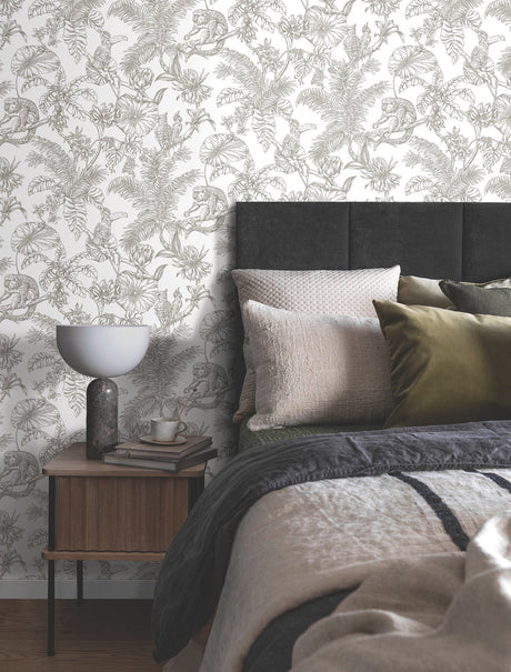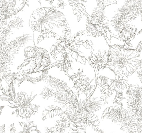 Tropical Sketch Toile Brown Wallpaper with Eclectic Toile Pattern - York RT7843