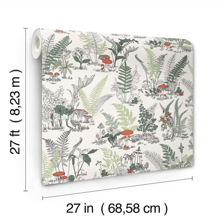 Mushroom Garden Toile Red & Green Whimsical Wallpaper - York RT7891
