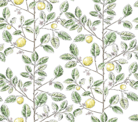 Limoncello Toile Green Wallpaper with Modern Toile Botanical Pattern - York RT7911