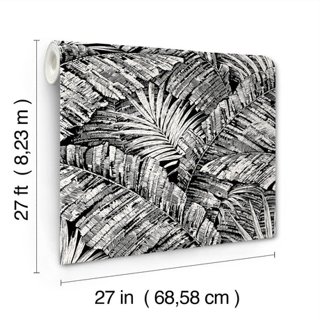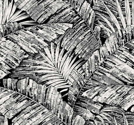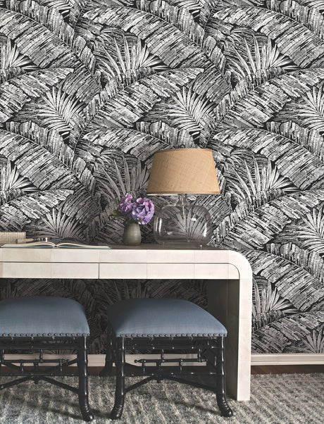 Palm Cove Toile White & Black Wallpaper with Tropical Toile Palm Fronds - York RT7921