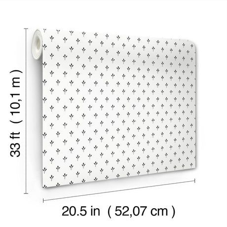 Charm Black & White Wallpaper with Petite Three-Leaf Stamp Motif - York MF4775