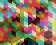 An abstract geometric wall mural fit for a modern abode. This colorful design features bright shades of pink, green, blue, red, purple, yellow, and orange. Measures 9ft 10in x 7ft 10in when assembled.